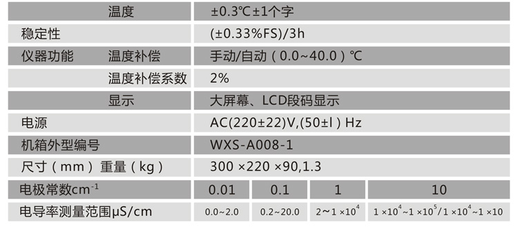4.配用本廠DJS-1C型電導電極(鉑黑),T-818-B-6型溫度電極