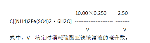 4.6.3 硫酸亞鐵銨標(biāo)準(zhǔn)滴定溶液濃度的計算: