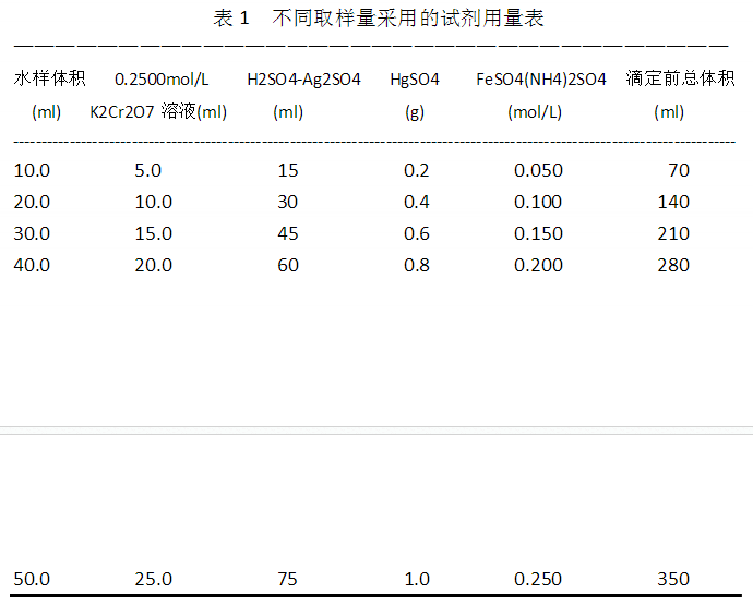 在水樣中加入已知量的重鉻酸鉀溶液,并在強酸介質(zhì)下以銀鹽作催化劑,經(jīng)沸騰回流后,以試亞鐵靈為指示劑,用硫酸亞鐵銨滴定水樣中未被還原的重鉻酸鉀由消耗的硫酸亞鐵銨的量換算成消耗氧的質(zhì)量濃度。