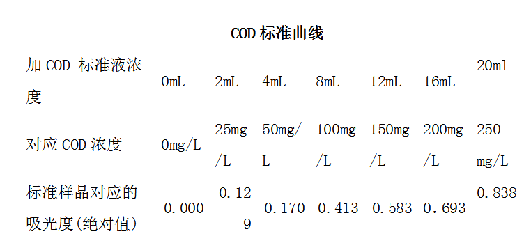 在440nm±20 nm 波長(zhǎng)處測(cè)定時(shí),水樣COD 的計(jì)算:
